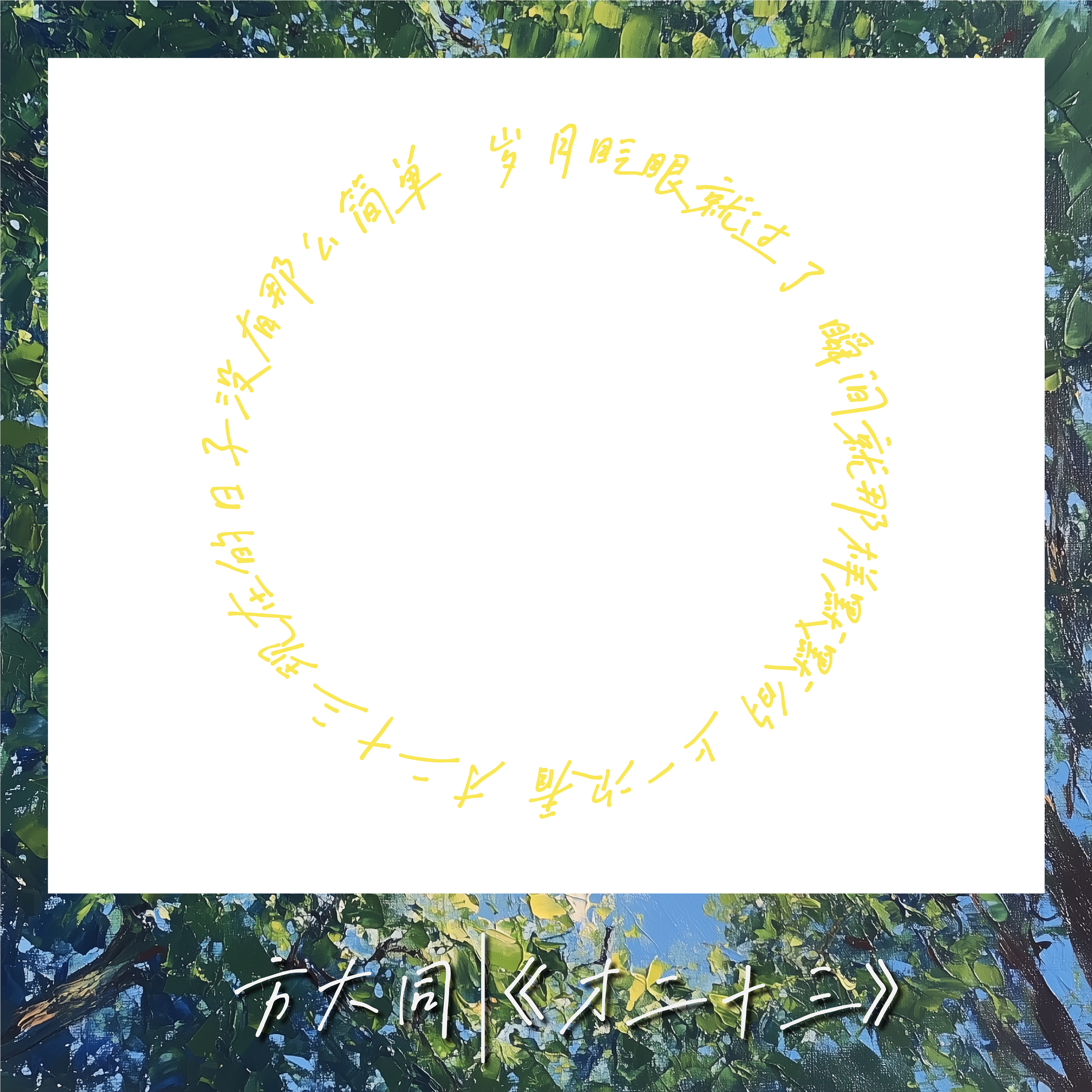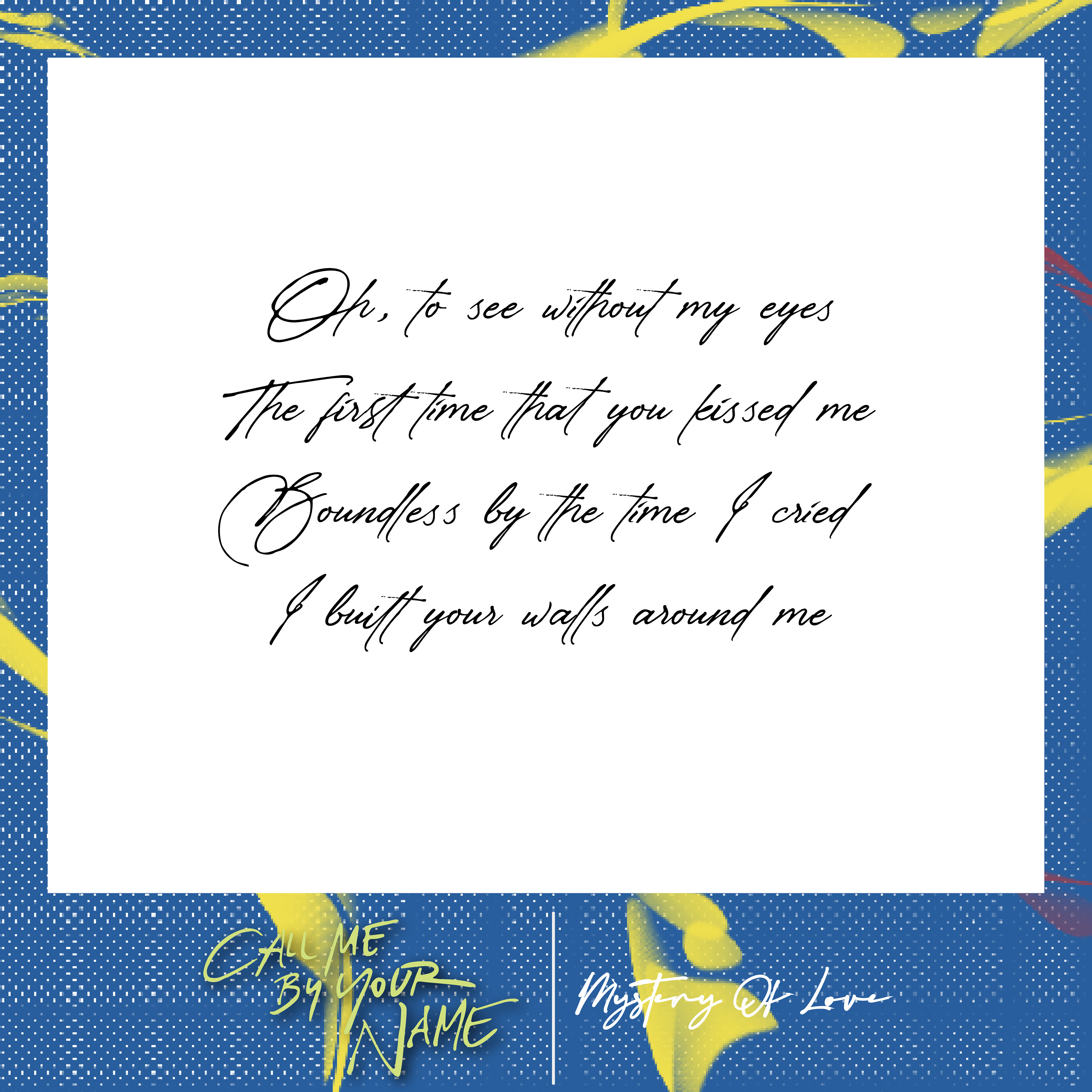Excerpted lyrics with borders designed to match the album cover's primary colour scheme.